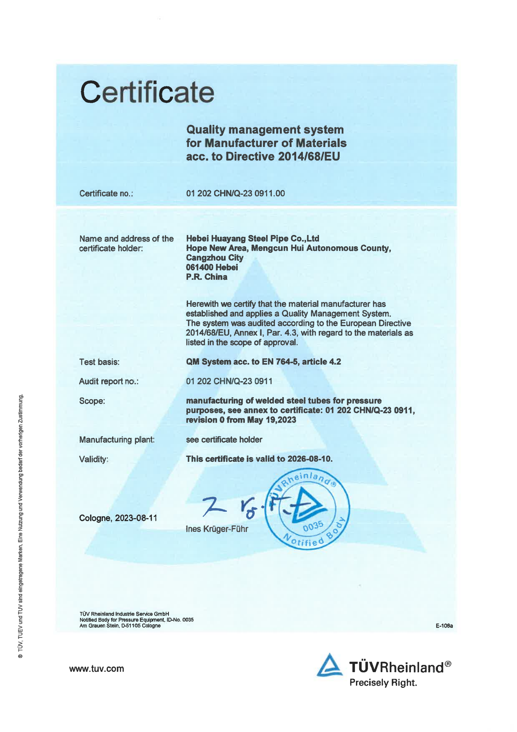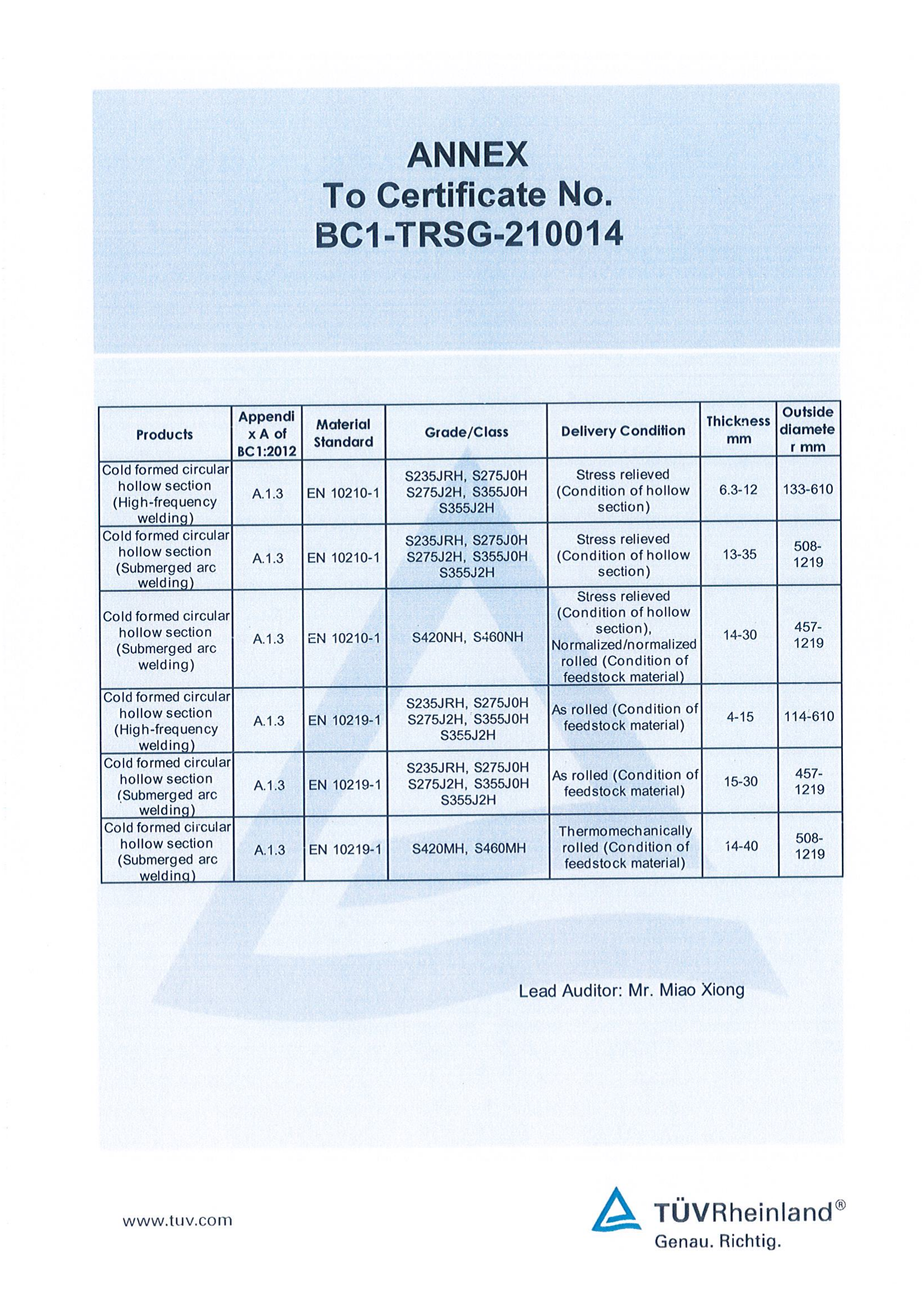 公司現(xiàn)有17條新型的自動(dòng)化鋼管生產(chǎn)線,包括Φ73-660.4高頻直縫焊鋼管生產(chǎn)線14條、Φ406.4-Φ1422.4直縫雙面埋弧焊鋼管生產(chǎn)線3條,并配備有一條防腐生產(chǎn)線,可進(jìn)行3PE、2PE、FBE、2PP、3PP防腐處理,同時(shí)還可提供鋼管深加工服務(wù)。公司擁有先進(jìn)的理化實(shí)驗(yàn)室,可承擔(dān)鋼管的各項(xiàng)物理及化學(xué)檢測(cè)與試驗(yàn)。公司先后取得了ISO9001質(zhì)量管理體系認(rèn)證、ISO14001環(huán)境管理體系認(rèn)證、ISO45001職業(yè)健康安全管理體系認(rèn)證、特種設(shè)備制造許可證、API5L和API2B認(rèn)證證書(shū)、歐盟CE認(rèn)證、俄羅斯GOST認(rèn)證、法國(guó)船級(jí)社(BV)工廠認(rèn)證、科威特石油入網(wǎng)認(rèn)證、中海油入網(wǎng)證、安全生產(chǎn)標(biāo)準(zhǔn)化二級(jí)企業(yè)等標(biāo)準(zhǔn)質(zhì)量體系認(rèn)證。